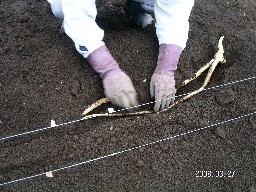 自然薯苗の植え込みです。